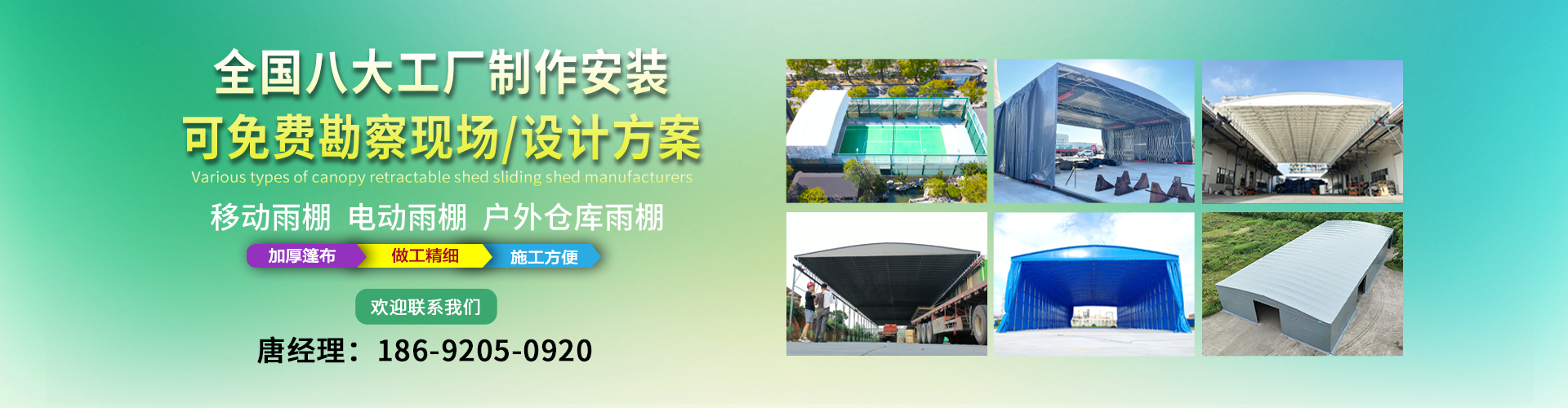 湖南鑫建華鋼結構工程有限公司是一家電動雨棚、膜結構車棚研發,生產銷售,施工安裝于一體的專業鋼結構科技公司,主要產品有伸縮雨棚,電動雨棚,膜結構車棚等?! 『系貐^職員目前有200多人,自建廠房15600平方米,配備先進的生產流水線,使每件品質產品的堅實基礎?! 」驹诤怅?,蘇州,天津,濟南,鄭州,江門,佛山,武漢,重慶均設有服務工廠,擁有專業的技術團隊,配備先進的設備和流水線生產,產能高,貨源充足,發貨速度快,服務區域廣。 移動伸縮棚適用于通道臨時倉儲、戶外運動遮陽、污水池遮蓋、能源交通、熱力化工、礦山、船舶制造及市政建設、物流、碼頭等領域的構件制作加工,成品半成品存放、倉庫、野外儀器設備操作用房等。尤其是對工廠發貨、倉儲臨時遮雨防嗮,梅雨期較長、建設周期較短的工程施工等特別適用。還可根據用戶需求量身定制、適合企業所需不同款式的產品。 我公司堅持“誠信社會為本,客戶滿意為榮”的經營理念,做到質量把控,嚴格管理,精益求精,恪守承諾。使鑫建華逐步走向成熟,其系統化、專業化日趨完善。以專業的技術、科學的管理,更高的產品質量,優良的企業信譽,真誠的客戶服務,靈活多樣的經營方式和務實創新的企業精神愿與社會各界攜手合作,為推動智能鋼結構建筑事業的發展而不斷努力。...